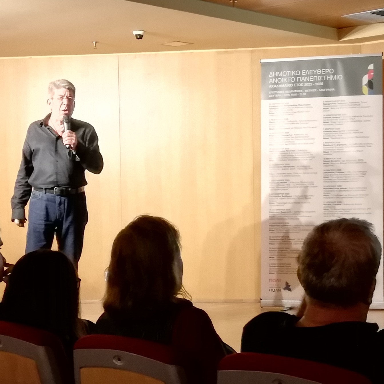 Μια ιδιαίτερα ενδιαφέρουσα διάλεξη με θέμα «Δημοσιογραφία και Πόλεμος στον 21ο αιώνα» πραγματοποιήθηκε τη Δευτέρα 3 Νοεμβρίου 2025, στο Πολιτιστικό – Συνεδριακό Κέντρο του Δημαρχιακού Μεγάρου Περιστερίου, στο πλαίσιο του Δημοτικού Ελεύθερου Ανοικτού Πανεπιστημίου (Δ.Ε.Α.Π.).